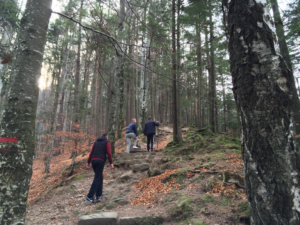 Apoi, am făcut traseul ”300 de scări” din Slănic Moldova. E un traseu ușor. Dacă nu te apuci de el după o noapte de petrecere. Traseul începe lângă izvoare și durează cam două ore și un pic cu tot cu pauze. Din câte știu e cam singurul traseu pe care îl poți face în Slănic Moldova. Priveliștile de pe traseu merită efortul. Plus că e o g(a)ură bună de oxigen. +poze
